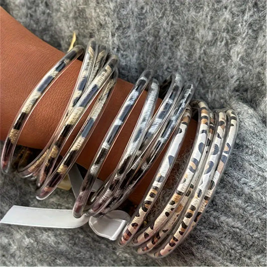 Ensemble de 5 Bracelets Léopard Noir & Blanc