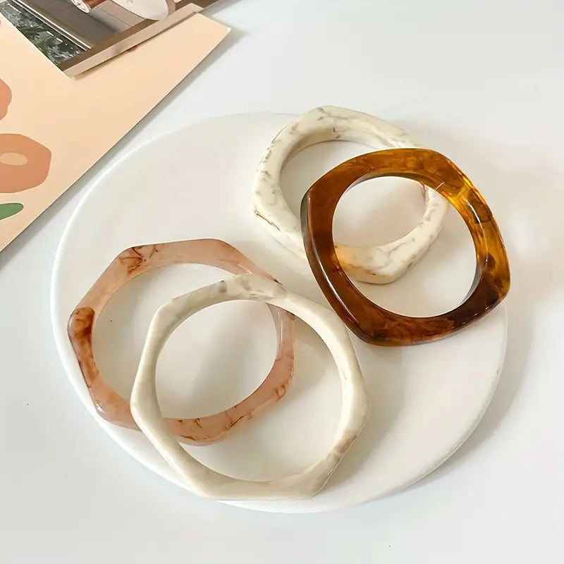 Ensemble de 4 bracelets joncs en résine ambrée KB4