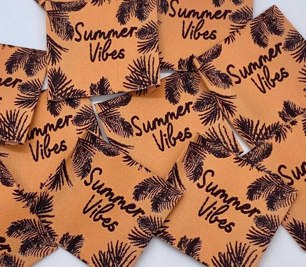 Étiquettes tissées avec l'inscription "Summer Vibes" à coudre sur les vêtements. Elles ne s’effilochent pas et apporteront une touche finale pour terminer les créations ou personnaliser un vêtement. Elles peuvent également cacher un accroc ou une tache! DIMENSIONS : 38 x35 mm avec 2 bords repliés de 6mm.