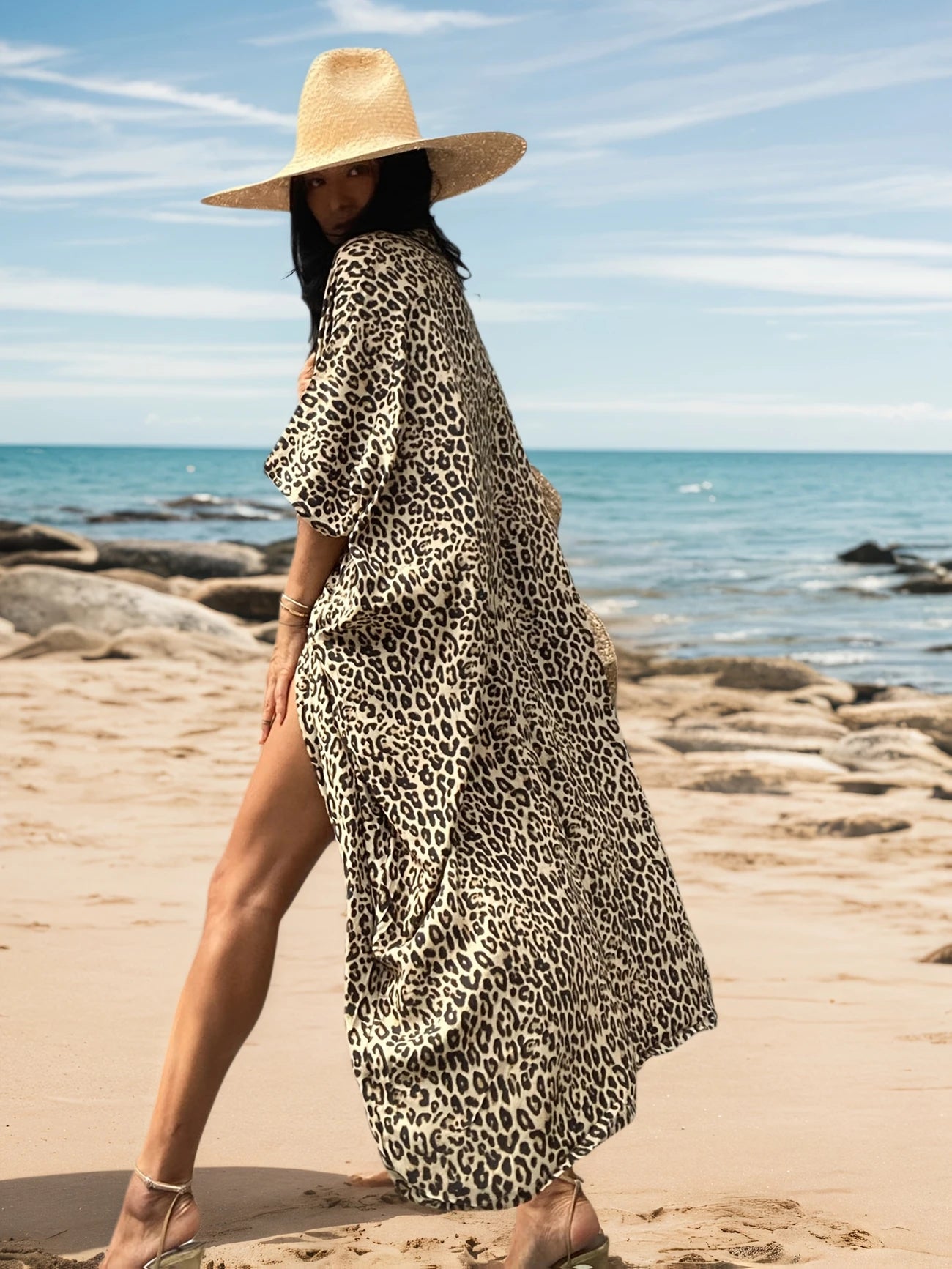 L'incontournable pour vos vacances en bord de mer, le kimono de style bohème imprimé Léopard. Taille unique.