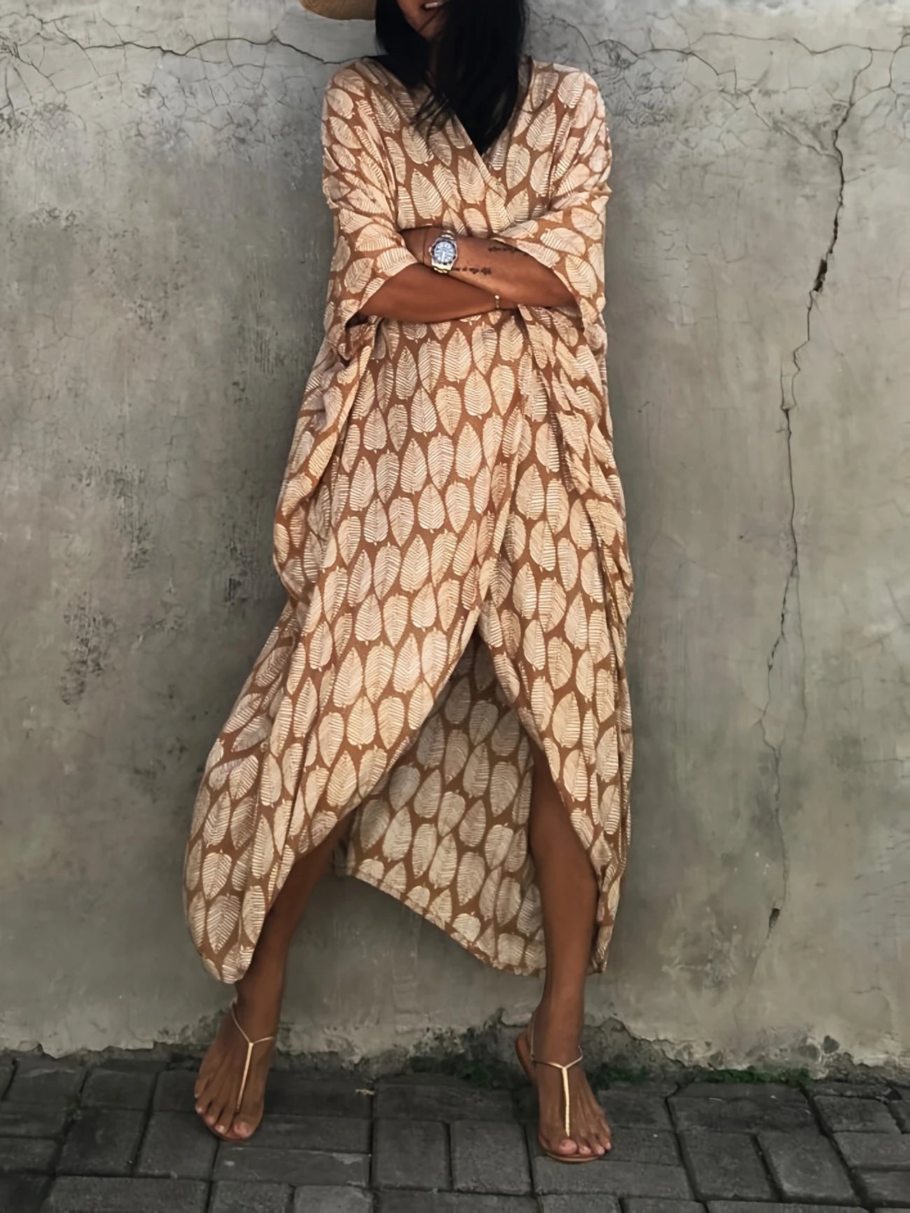 L'incontournable pour vos vacances en bord de mer, le kimono de style bohème imprimé feuille. Taille unique.