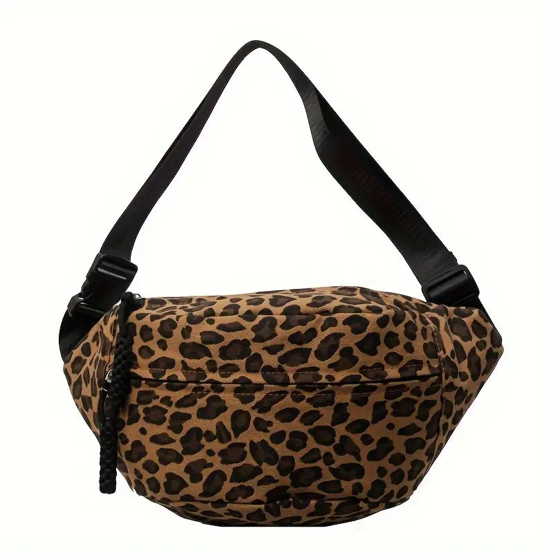 Sac banane imprimé léopard, grande capacité en toile de haute qualité, bandoulière réglable.